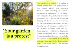 When it’s not busy selling data, Facebook can be a treasure trove. I just discovered Benjamin Vogt, a garden designer and writer who is working hard to promote and create nature-friendly gardens. He works in Nebraska (prairie ecosystems) so many of the plants he uses would not be appropriate here in Hamilton, but I absolutely love his eloquence and defiance in the face of corporate and suburban garden homogeniety.